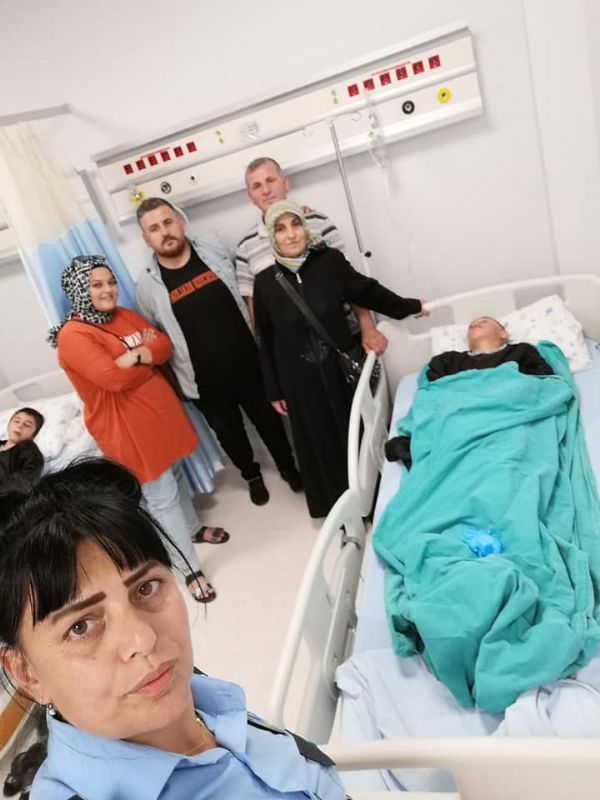 Zabıta memurları Gamze Cengiz ve Yasemin Aksu'nun gözetimi ve yardımları ile, Belediye araçlarıyla götürüldükleri hastanede sünnet edilen çocukların yakın zamanda da sünnet düğünleri yapılacak.